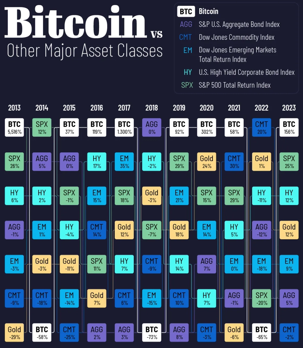 Bitcoin Alone Outperformed Traditional Assets by Over 26,000% in the Last Decade. Imagine a $100 investment in 2014 is now worth $26,931.1 today. While these figures are great, it's important to look at its performance relative to other assets in both the short & long term.